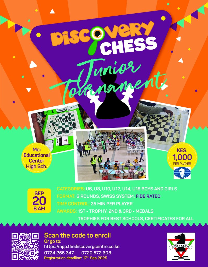We are excited to invite you to participate in the Discovery Chess Tournament on 20th September 2025, organized by The Discovery Centre at Moi Educational Centre